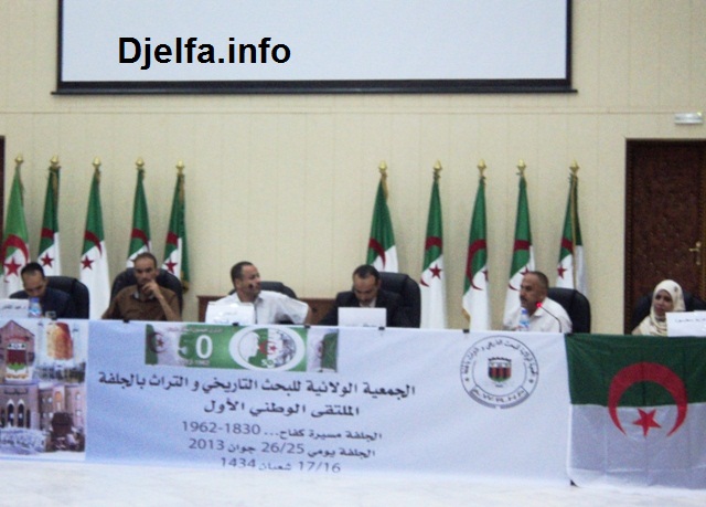 نظمت الجمعية الولائية للبحث التاريخي والتراث لولاية الجلفة، الملتقى الوطني الأول " الجلفة مسيرة كفاح 1830-1962" وذلك بالتنسيق مع المنظمة الوطنية للمجاهدين- مكتب الجلفة- والمنظمتين الوطنيتين لأبناء الشهداء والمجاهدين، وكذا المجلسين الشعبيين الولائي والبلدي بالجلفة، وبتأطير علمي من إتحاد المؤرخين الجزائريين، حيث احتضنت جامعة زيان عاشور فعاليات هذا الملتقى الذي دام يومي 25 و26 ماي بمساهمة أكثر من 14 جامعة وطنية فضلا عن أساتذة من جامعة الجلفة.