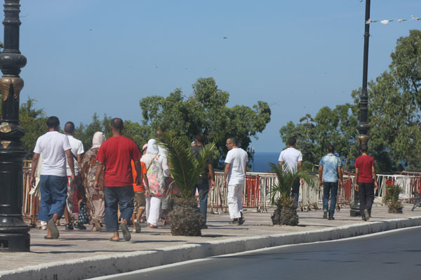 تدعمت وهران خلال السنوات الأخيرة بفضاءات و مساحات واسعة للترفيه و التسلية هبَ إليها المواطنون و العائلات بغية الترويح عن النفس خاصة خلال موسم الاصطياف ، و رغم وفرة المشاريع المماثلة و اتساع الأماكن الترفيهية إلا أنَ واجهة البحر احتفظت بذلك السحر الذي جعل عشاقها أوفياء لها و جذب السياح و الزوار الجدد .. فلا يمكن لزائر الباهية أن تطأ قدماه أرضها دون أن يخصص وقتا للاستمتاع بإطلالة على البحر من الواجهة.مراقبة البواخر والتقاط الصوركانت الساعة تشير إلى السادة مساء عندما توجهنا إلى المكان الذي كان يعج بالزوار والسائحين الذين وجدوا الراحة والهدوء في المكان ، حيث كانت الغبطة بادية على وجوه الجالسين على المقاعد الموزعة على طول الرصيف الذي بلغ الأربعة أميال .. منهم من اتخذ من حاجز الشرفة جدارا قصيرا يتكئ عليه حتى لا يفوته جمال المنظر الساحر ، ومنهم من فضل التقاط صور تذكارية مع عائلته أو أصدقائه ، وما لاحظناه خلال جولتنا الاستطلاعية أن المتواجدين بالمكان يقفون مطولا دون ملل أو كلل لمراقبة البواخر على البحر من بعيد أثناء اقلاعها باتجاه فرنسا أو اسبانيا من الميناء الذي يتموقع تحت الواجهة بحدود طريق مؤدي نحو الكورنيش ، أين تبدو المركبات من الأعلى و هي تسير و ترسم صورة معبرة عن ديناميكية الحياة اليومية . صادفنا بالمكان العديد من الضيوف ورصدنا بعض الانطباعات حول واجهة البحر السياحية ، فقالت الأستاذة " زهرة " من ولاية تيارت إنها جاءت إلى الباهية رفقة بناتها الثلاث لقضاء أسبوع قبل أن دخول موسم دراسي جديد ، وقد تعودت خلال زيارتها للمكان سنويا أن تمشي على رصيف واجهة البحر وتتجه نحو أقرب محل لتناول المثلجات ، دون أن تنسى التقاط صور تذكارية قبل العودة إلى " تيهرت" ، أما التاجر المصري " أحمد " فأوضح أنه استقري بوهران و فتح محلا لبيع الأفرشة .. و كلما أتيحت له الفرصة يتوجه نحو " واجهة البحر" التي تشعره بالراحة وتحسه بأنه في مدينته " الاسكندرية " نظرا للتشابه الكبير بين المكانين ، و يقول الشاب " رضا" إنه يقطن بالقرب من واجهة البحر ، وقد اعتاد أن يلتقي برفقائه في هذا الفضاء الجميل عند المساء لقضاء وقت ممتع سويا .. لوحات فنية وفسيفساء تزين المكانونحن نجوب المكان لاحظنا الكثير من الأجانب الذين قدموا من مختلف دول العالم وهم يسيرون على الرصيف ويلتقطون الصور هنا وهناك ، لاسيما أولئك الذين قدموا من اسبانيا ،فرنسا و الصين و تركيا و البرتغال المالي و النيجر ، ومن الدول العربية في مقدمتهم سوريا فلسطين و مصر، و أغلبهم سياح نزلوا بالجزائر ضيوفا أو عمالا بموجب عقود مختلفة تتعلق بمشاريع تنموية انطلقت خلال السنوات الأخيرة ، هذا و نذكر أن واجهة البحر لا تخلو من المارة طيلة ساعات النهار أو الليل .. و غالبا ما تعرف حركية كبيرة خلال الساعات الأخيرة من المساء ، و للإشارة نذكر أنَ " واجهة البحر" تمَ تشييدها إبان الاستعمار الفرنسي سنة 1949، و قد أوليت خلال السنوات الأخيرة اهتماما كبيرا من قبل المسؤولين و عرفت بعض التعديلات التزيينية مثل تدعيم جدار مزين بلوحات فنية جميلة وفسيفساء زادتها رونقا و جمالا .