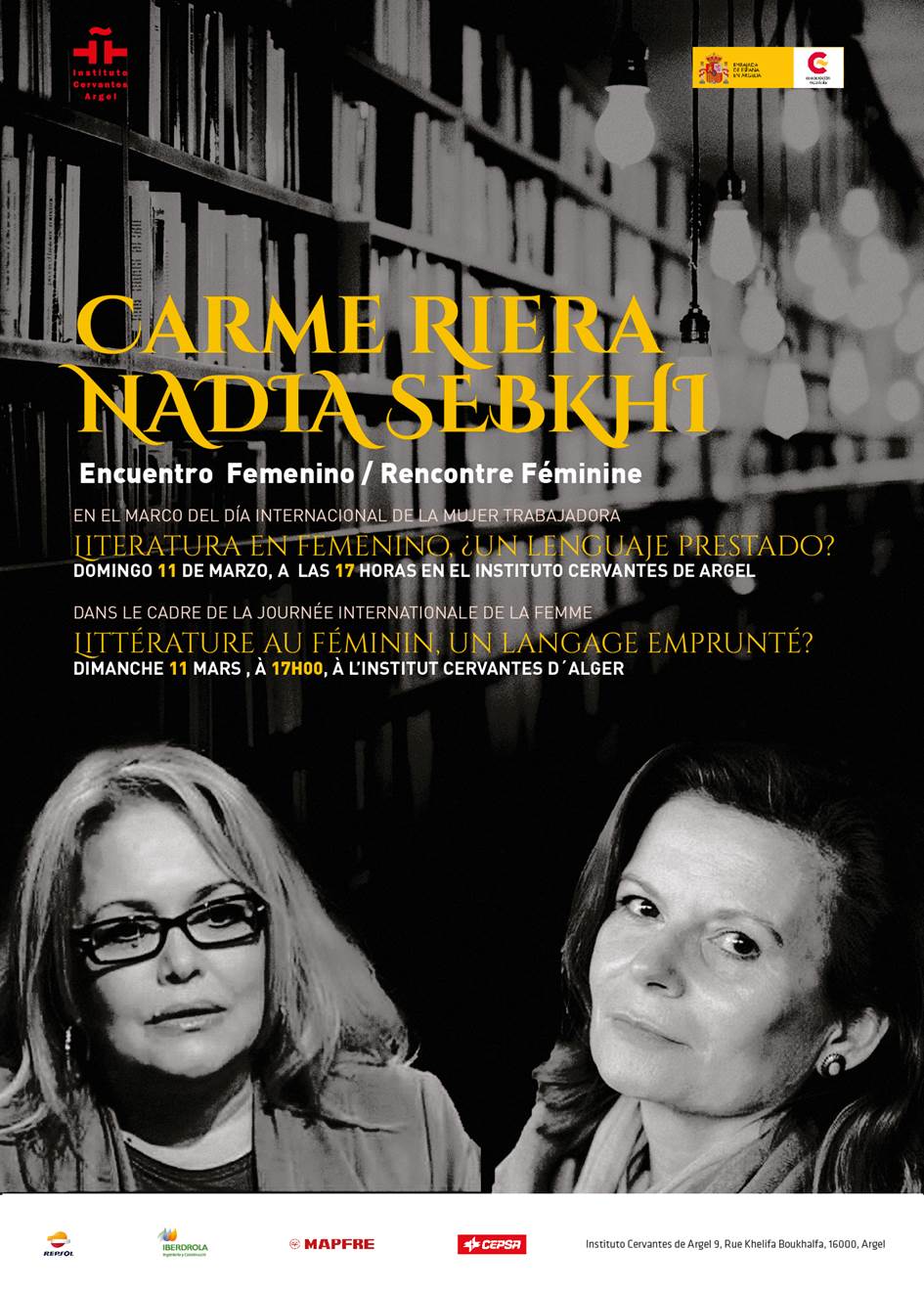 A l'occasion de la célébration de la Journée Internationale de la Femme, l’Ambassade d’Espagne et l’Institut Cervantès d’Alger, vous convient à la conférence intitulée " Littérature au féminin" et animée par Carme Riera et Nadia Sebkhi.