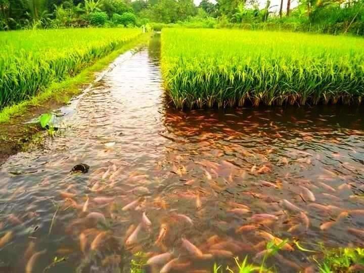 Les agriculteurs indonésiens utilisaient une très belle technique. Ils ont fait un lâcher de poissons avec des très grande quantité , dans l'eau plantée de riz, ils ont gagné trois choses: