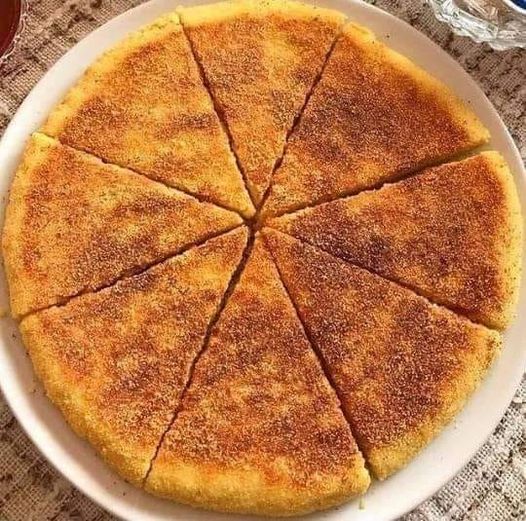 Dans un récipient, prenez 1,25 kilogramme de semoule fine et ajoutez-y une cuillère à soupe d'huile et une cuillère à soupe de beurre. Ensuite, prélevez une petite poignée de ce mélange et mettez-la de côté. Pour le reste de la semoule, ajoutez une petite cuillère de levure de boulanger, une grande cuillère de sucre, une pincée de sel et une pincée de levure chimique. Mélangez ces ingrédients, puis ajoutez 2 verres d'eau froide. Laissez reposer la pâte pendant une demi-heure. Ensuite, chauffez une poêle à feu doux et saupoudrez-la légèrement d'huile ou de beurre, puis saupoudrez-la de semoule (utilisez celle mise de côté précédemment). Étalez la pâte sur la poêle et appuyez fermement avec de la semoule. Laissez cuire jusqu'à ce qu'elle soit dorée, puis retournez-la pour la faire cuire de l'autre côté après l'avoir saupoudrée de la semoule restante.