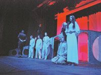 Dans la pièce "la Voix", produite par le Théâtre régional de Batna et mise en scène par Ali Djebara, une tenue et un son, celui de la flûte, nous indiquent le lieu : quelque part dans les Aurès, et le temps : durant la guerre de libération. Sans prélude, un groupe de soldats de l'occupant fait irruption dans la modeste demeure d'un jeune couple, Hizia et Ahmed.