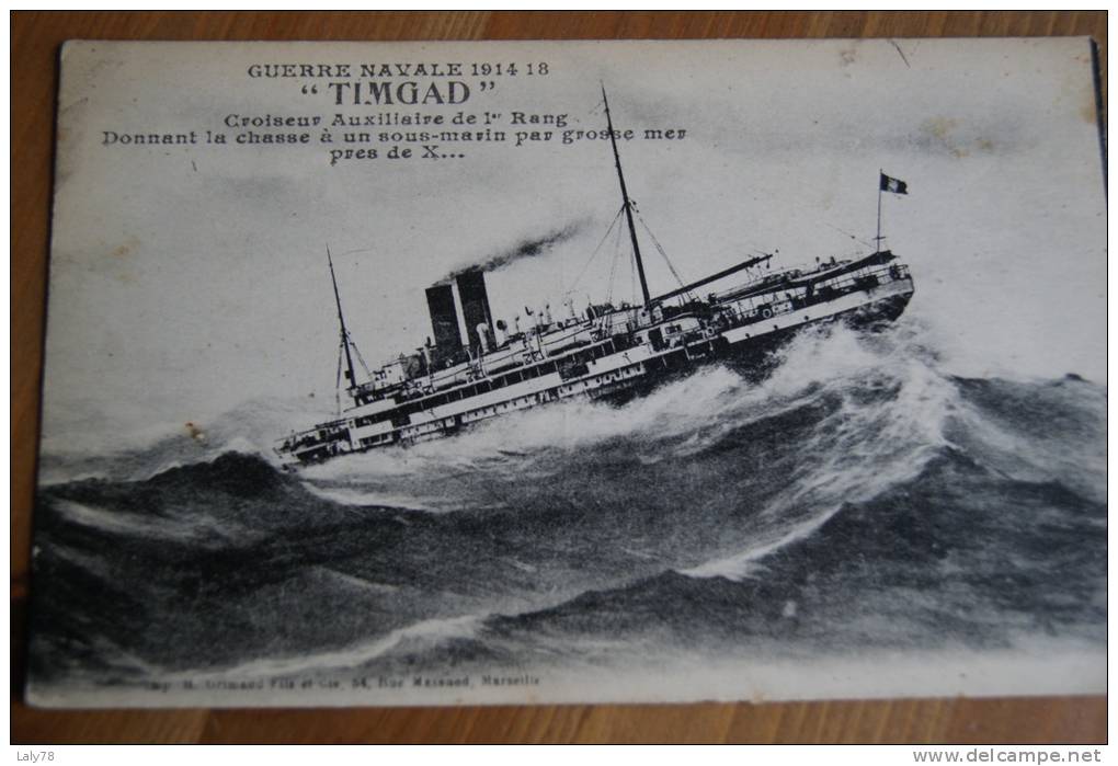 Timgad Guerre Naval-Croiseur auxiliaire de &er Rang donnant la chasse à un sous marin par grosse mer très belle CPA
