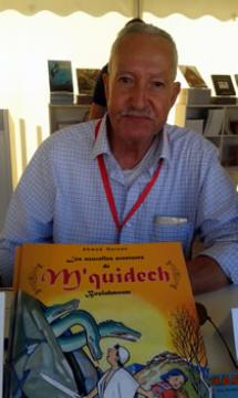 Je présente ma biographie avec mes dessins des années 60 jusqu'à nos jours. Des dessins de presse, caricatures politiques etc... c'est rassemblé dans un recueil qui s'appelle La bonne Destinée avec une préface de Omar Zelig. Le second que je propose c'est M'Quidech. On y découvre trois histoires de M'Quidech. Des histoires du terroir, bien de chez nous. De vieilles légendes. Ce 3ème livre enfin c'est Bhar Lemnam. Je l'ai édité à mon compte en 2000. C'est inspiré du projet de Bencherif, le chef du Pnsd de Constantine qui voulait créer une mer dans le Sahara. A l'intérieur, ce sont tous des personnages politiciens connus qui vont conquérir cet endroit. Il y a aussi des sportifs, des artistes etc. Il n'y a pas un personnage anonyme. Mais malheureusement, l'impression laisse à désirer. A l'époque, je l'avais édité à Chéraga. Mais le travail a été bâclé; je ne suis pas satisfait. C'est pourquoi d'ailleurs il n'a pas marché. Je l'ai fait à mon compte. A l'occasion du dixième anniversaire du Fibda ils ont fait des réductions de presque 40%. Il valait avant 600 DA, maintenant 3500 DA. Celui-là, comme je l'ai édité à mon compte je le liquide à 200 DA. De toute façon, on ne vit pas de la bande dessinée. On ne peut pas vivre avec. Tous les dessinateurs sont des fonctionnaires ailleurs. Chacun a un salaire quelque part, ils font ça par amour de la bande dessinée. On ne peut pas vivre avec la bande dessinée ici. On a une concurrence de taille, c'est le Net, la télé...Par contre, il y a 30, 40 ans, les gens ça leur faisaient de la lecture. Sauf peut-être à l'étranger où la bd fait vivre, grâce à des personnages connus sur le plan mondial comme Astérix, Luky Luke, Tintin etc. Ceux-là, ma foi, c'est une exception. Mais pour nous autres, on est là pour faire de l'animation pour l'instant, on est là effectivement et ça nous permet de se rencontrer et se retrouver une fois par an. C'est déjà bien.