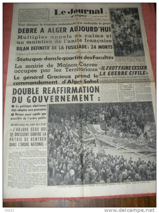 LE JOURNAL D ALGER 26 JANVIER 1960 ORAN GERYVILLE TLEMCEN TIABET SIDI BEL ABBES MOSTAGANEM