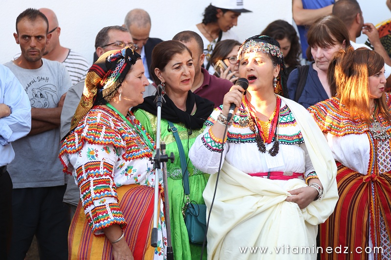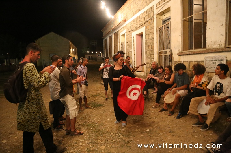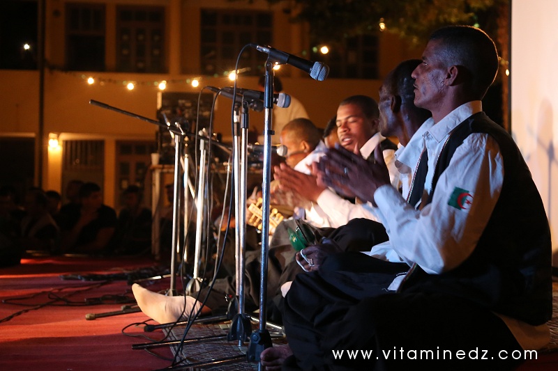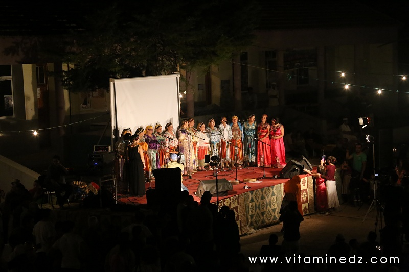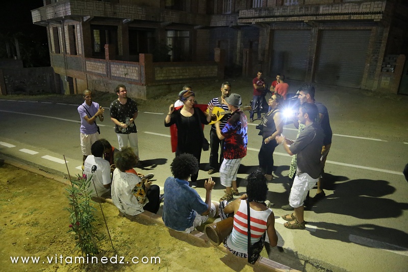 En soirée, et durant toute la semaine, des projections cinématographiques ont eu lieu à 22h et des concerts à partir de minuit. Beaucoup de groupes sont passés sur la scène du festival Raconte-Arts cette année. Il y a eu Sidi Bemol, Akli D, Diwan de Blida avec Mohamed Behaz, le Diwan de Ouaregla et le Diwan de Ghardaîa. Les diwan, en plus de leur prestation scénique, nous ont gratifiés d’une déambulation dans les dédales du village. Ganga (tambour) et Karkabou (crotales) donnant le tempo, les chants d’invocation et les danses koyo ont été au rendez-vous pour le plus grand plaisir des présents. Dans la programmation musicale, il y avait aussi ce groupe de Dames du village, toutes vêtues de tenues traditionnelles, sourires marqués sur leurs visages et ces chants, ces magnifiques chants, souvent de complaintes, sinon de fêtes. Mon coup de cœur !