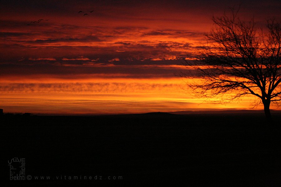 Là-bas, une silhouette d’arbre se dresse contre la lumière mourante.